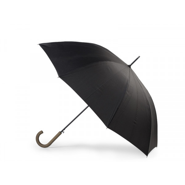 BAVARIA 40.024.10 Windproof umbrella with automatic opening Umbrella with 8 panels, rubberized handle with wooden effect, fiberglass frame, black metal shaft (O 10 mm), top and tips Material: pongee Size: O 110 x 92.5 cm Packing: 20/10 Print info: 20 x 8 cm Recommended print type: screen printing, transfer printing