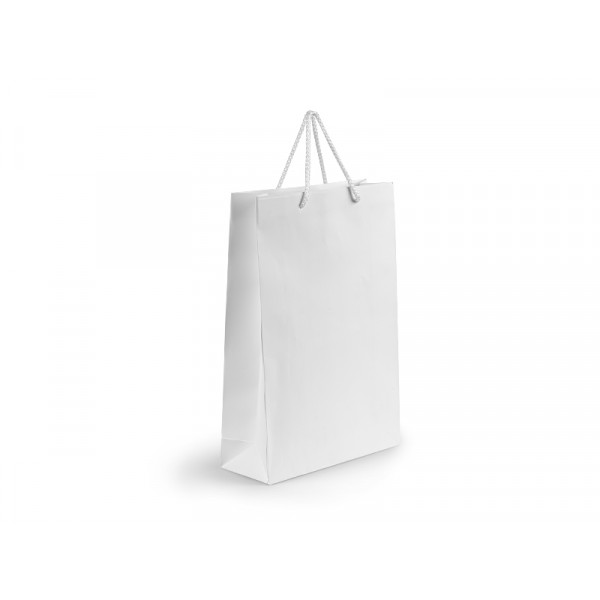 PAPIRNA POKLON VREĆICA, mat laminirana Sastav: papir Veličina: 24 x 38 x 9 cm Pakiranje: 100/10 Veličina otiska: 15 x 8 cm Preporučeni tisak: sitotisak