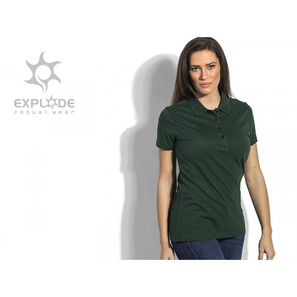 ŽENSKA POLO PAMUČNA MAJICA 180 g/m2, blago strukirana, šivana sa strane, dupli štepovi na rukavima i dnu, četiri gumbića u boji majice, rezervni gumbić, ojačana trakom duž vrata i dodatnim štepom duž ramena .