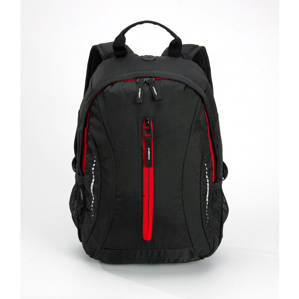 Mali ruksak iz kolekcije Flesh. Izrađen od najkvalitetnijeg materijala : najlona oraz poliesteru. Ima izlaz za slušalice, bočne mrežaste džepove i jedan glavni džep s unutarnjim organizeom i mali džep na prednjoj strani ruksaka. Ima i sustav za spriječavanje znojenja leđa. Dodatno ima reflektirajuće elemente. Volumen: 12L. Materijal: najlon, jacquard 420D, najlon Ripstop, poliester 600D Preporučeni tisak: sitotisak